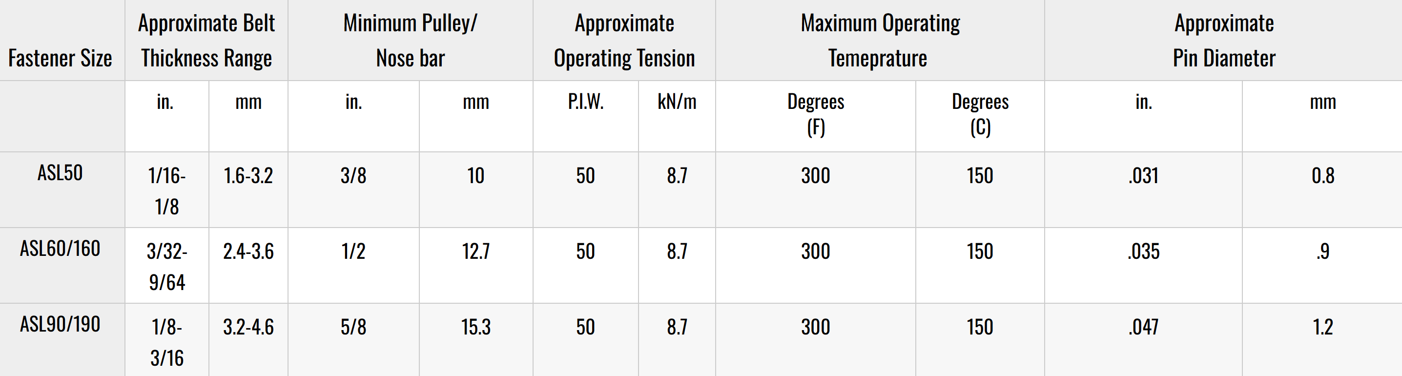 - Fastener Strength: Rated up to 50 PIW (8.7 kN/m), providing dependable performance for light to medium-duty conveyor belts.