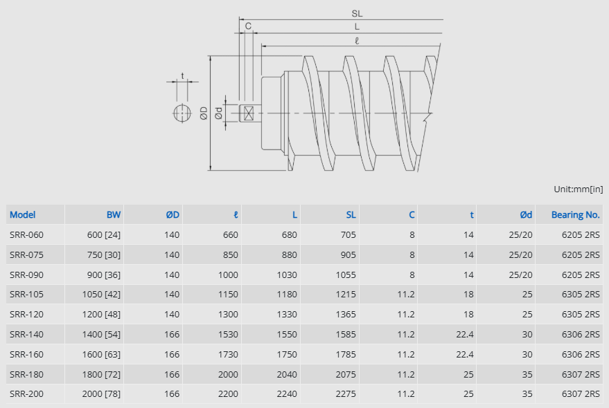 - The unique outward rotation of the spiral discs continuously removes debris, keeping the belt surface clean during operation.